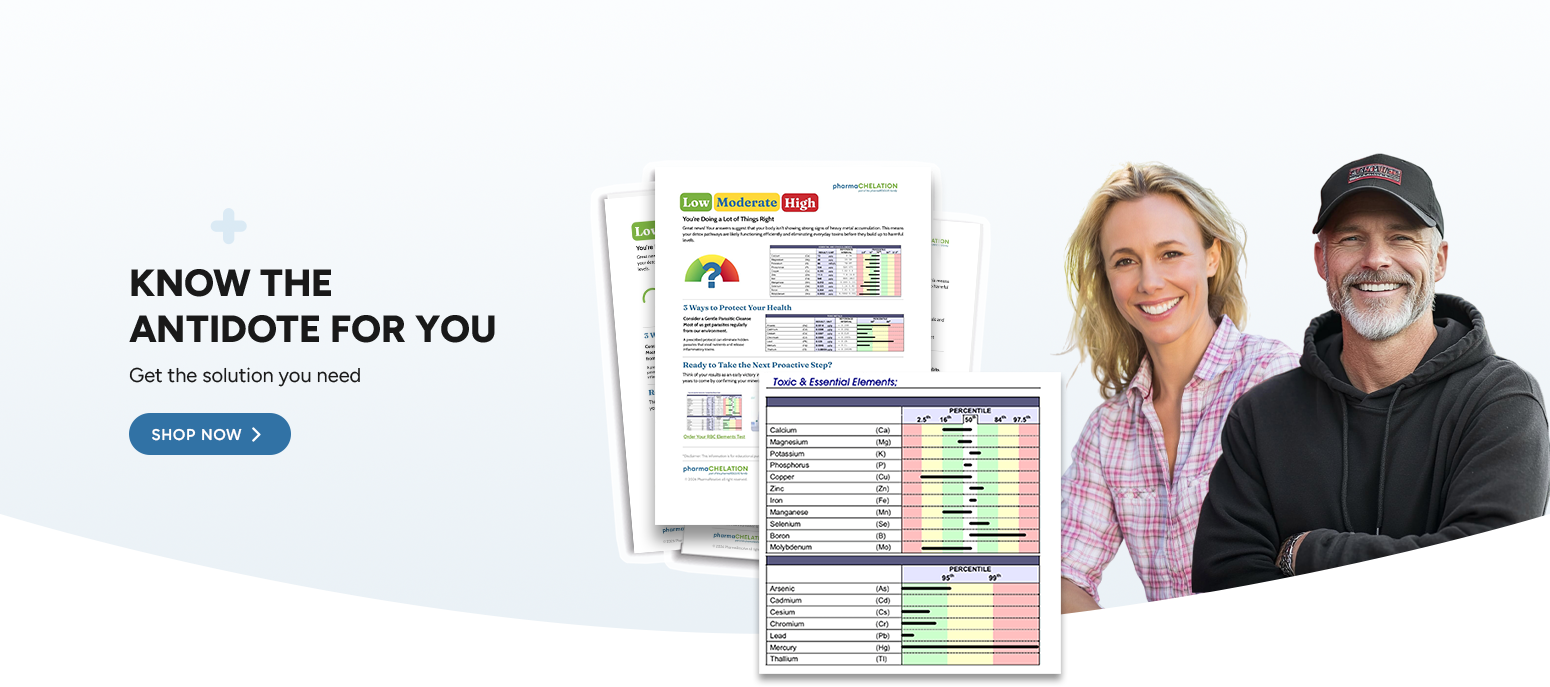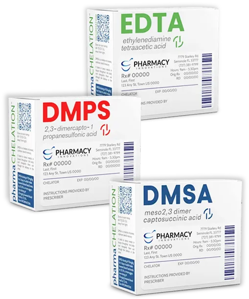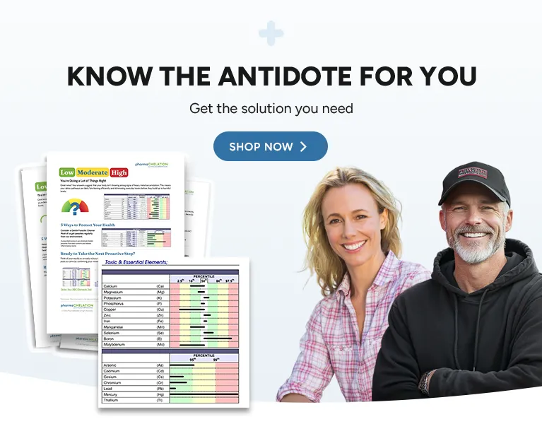 We provide access to testing and a class of drugs called “chelators” (Kee-lay-tors) which are used to remove toxic heavy metals from humans. The process of using a chelator is called “chelation.” Heavy metal toxicity can be the result of long-term heavy metal accumulation, or an acute, immediate exposure. Often it can also be associated with an imbalance or diminishment of beneficial minerals.